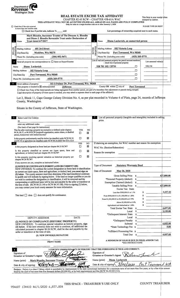 | 1 | 01/22/2021 | TMBD | Timber Only Deed | KURT LAMBERTON | NORTHWEST LOGGING CO LLC | | | $40,000.00 | 136017 | |