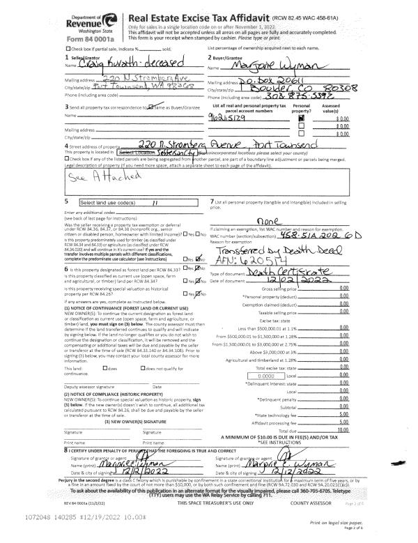 | 4 | 01/20/2005 | SWD | Statutory Warranty Deed | BARTH, JOHN L | PFAFF, CHARLES/SOMMANTICO,JOAN | 0 | 0 | $200,000.00 | 102634 | 0 |