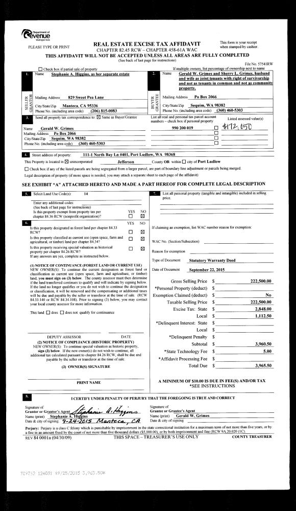 | Mailing Address: | BARBARA J HUNTINGFORD 7123 BEAVER VALLEY RD CHIMACUM, WA 98325-8736 | % Ownership: | 100.0000000000% |
