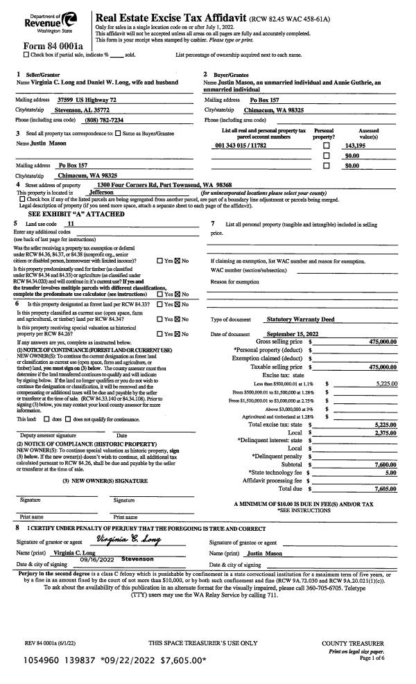 | Mailing Address: | 7083 BEAVER VALLEY RD CHIMACUM, WA 98325 | % Ownership: | 100.0000000000% |