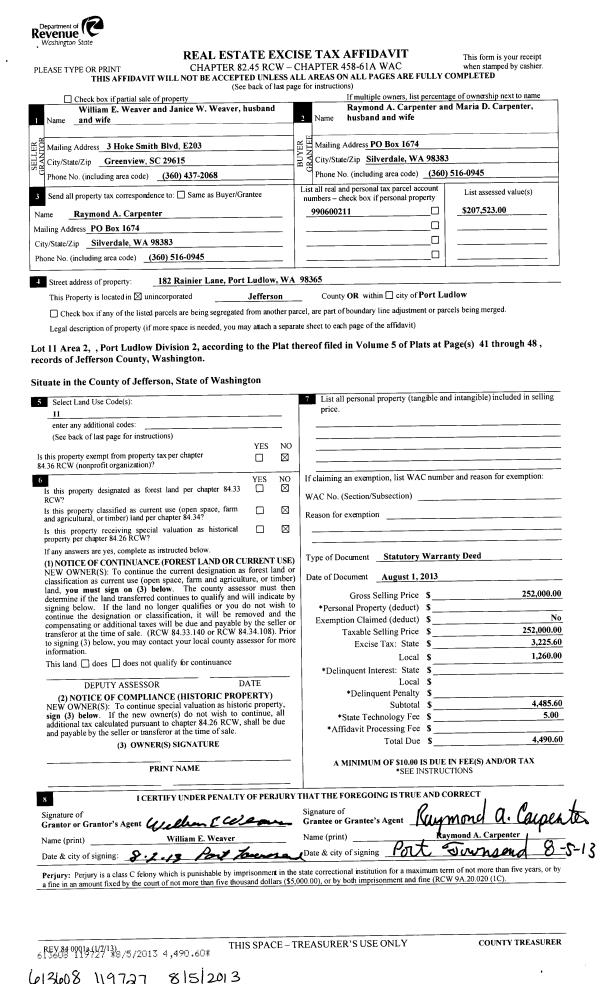 | Mailing Address: | 6073 BEAVER VALLEY RD CHIMACUM, WA 98325-8742 | % Ownership: | 100.0000000000% |