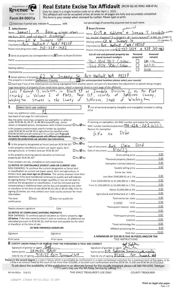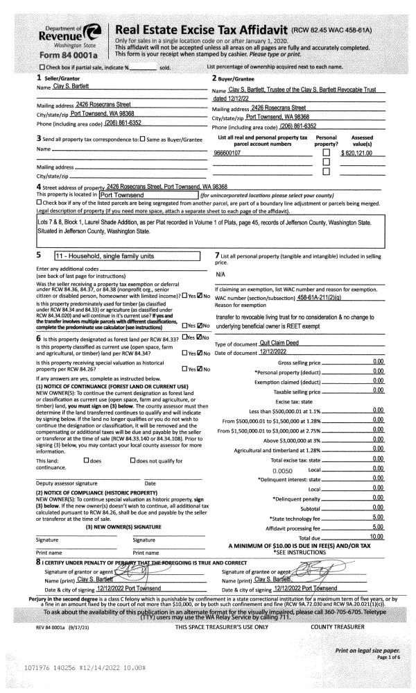 | 4 | 09/21/2021 | QCD | Quit Claim Deed | CLIFFORD E LINDEROTH JR | LESLIE ELLEN LINDEROTH | | | $0.00 | 137671 | |