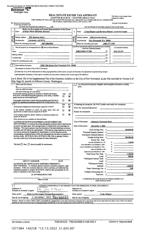 | 3 | 09/16/2022 | SWD | Statutory Warranty Deed | LESLIE ELLEN LINDEROTH | TEREVA BLACK | | | $278,000.00 | 139838 | |