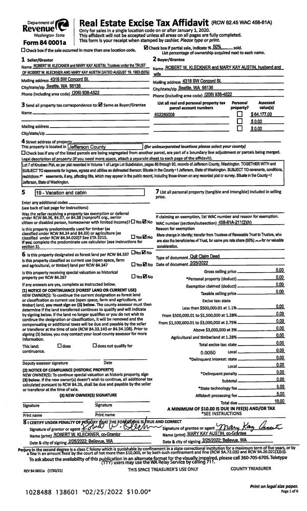 | 6 | 10/19/1998 | QCD | Quit Claim Deed | LINDEROTH, CLIFFORD E/JOA | LINDEROTH, CLIFFORD & JOAN/TR | 0 | 0 | $0.00 | 85645 | 0 |
