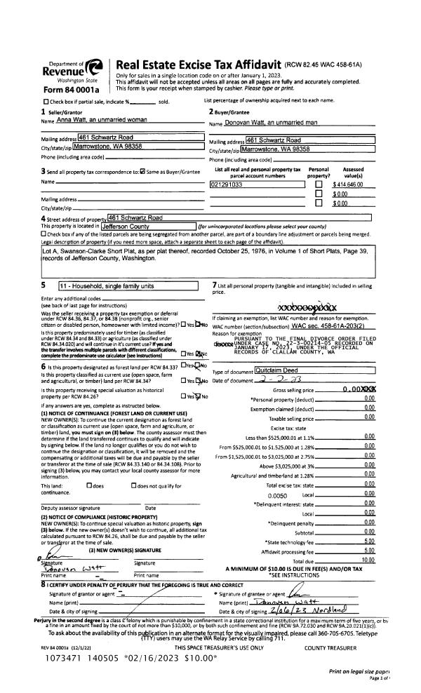 | 2 | 09/15/1997 | SWD | Statutory Warranty Deed | GOULD, JAMES A/PATRICIA V | CHRISTIAN, E/JR & K K | 0 | 0 | $0.00 | 82781 | 0 |