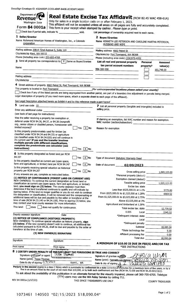 | Mailing Address: | JAMES T TORDOFF TRUSTEE 2759 W VALLEY RD CHIMACUM, WA 98325-9792 | % Ownership: | 100.0000000000% |