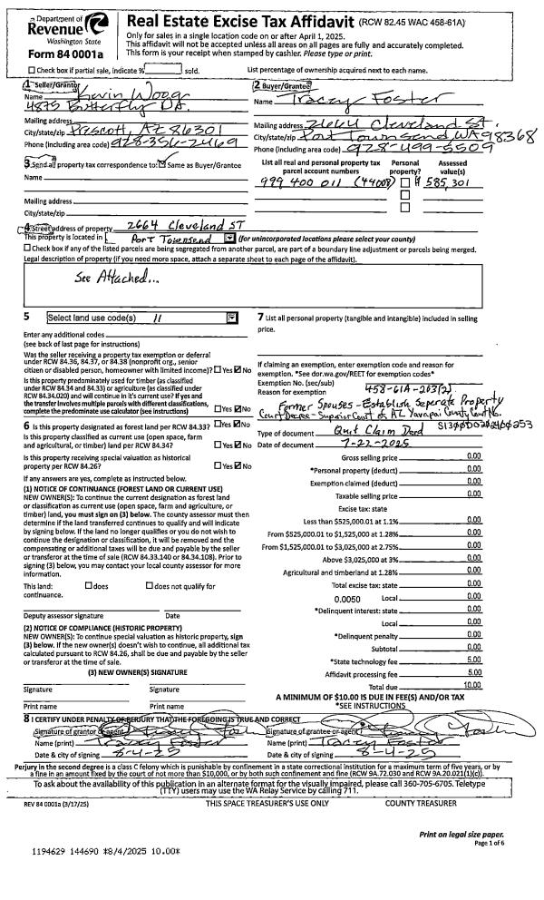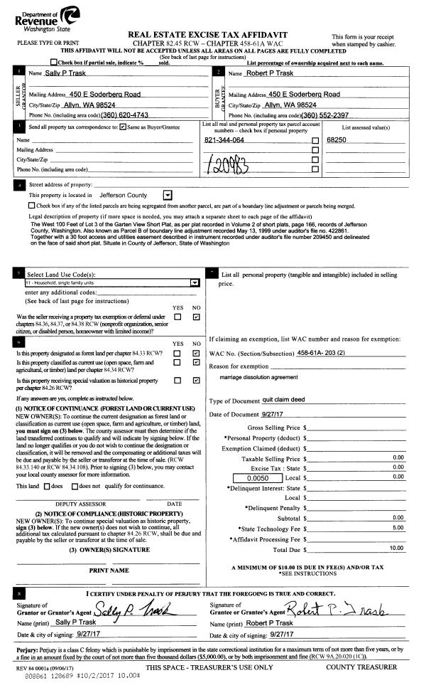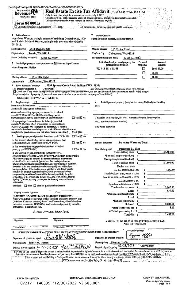 | Mailing Address: | 973 NAYLOR CREEK RD CHIMACUM, WA 98325-8762 | % Ownership: | 100.0000000000% |