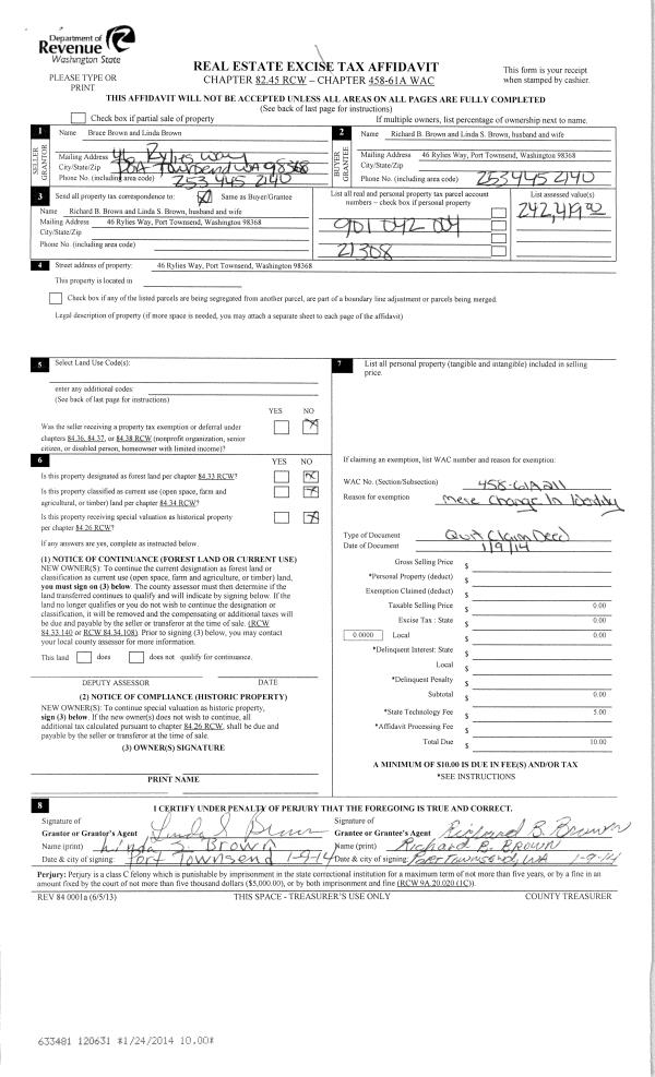 | 2 | 07/25/2014 | QCD | Quit Claim Deed | STATE OF WASHINGTON-FOREST BRD | JEFFERSON COUNTY | | | $1,753,000.00 | 121716 | |