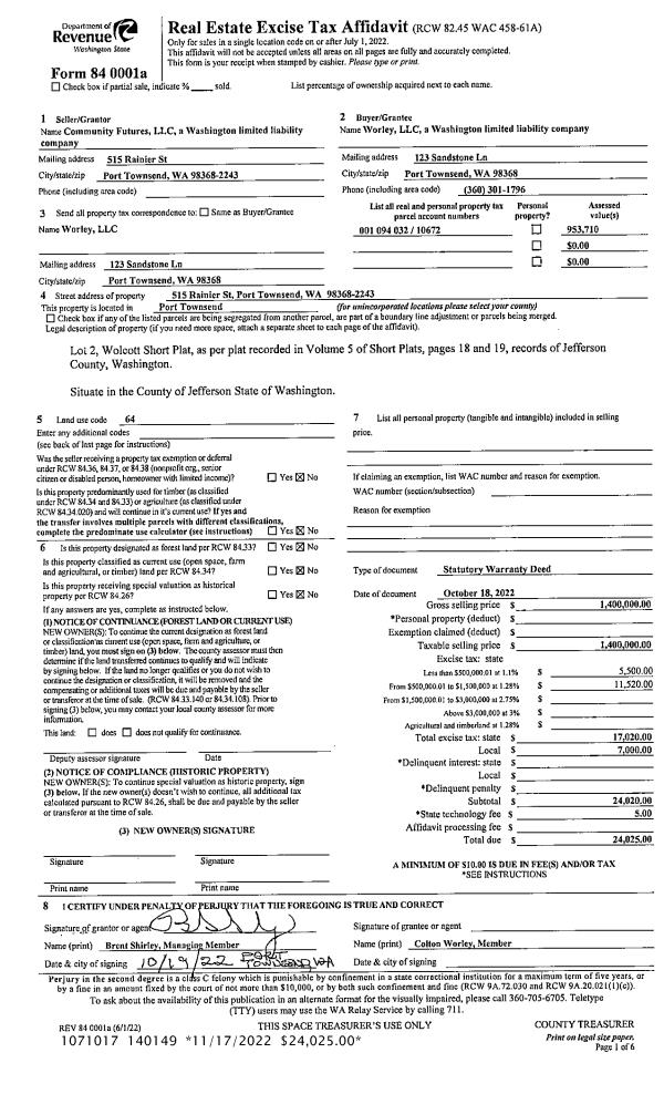 | Mailing Address: | SUZANNE E GUILLIAMS PO BOX 661 CHIMACUM, WA 98325 | % Ownership: | 100.0000000000% |