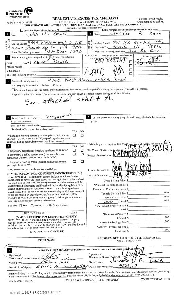 | Mailing Address: | YVONNE W DE GRASSE PO BOX 552 CHIMACUM, WA 98325-0552 | % Ownership: | 100.0000000000% |