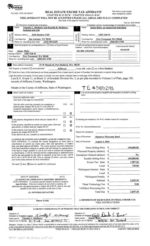 | 4 | 02/23/2015 | SWD | Statutory Warranty Deed | THOMAS J & JANICE L NEUDORFER | MERRILL & RING FOREST PRODUCTS | | | $1,225,000.00 | 122721 | |