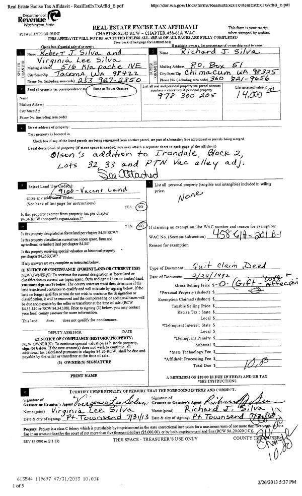 | 5 | 10/19/2013 | QCD | Quit Claim Deed | | | | | | 120176 | |