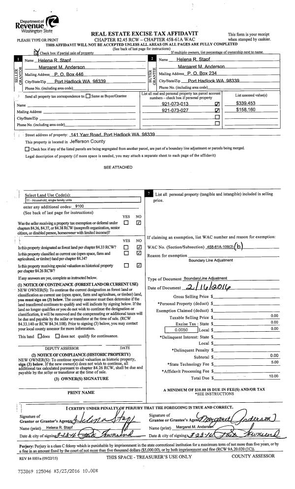 | Mailing Address: | 3771 CENTER RD CHIMAUCM, WA 98325-9759 | % Ownership: | 100.0000000000% |
