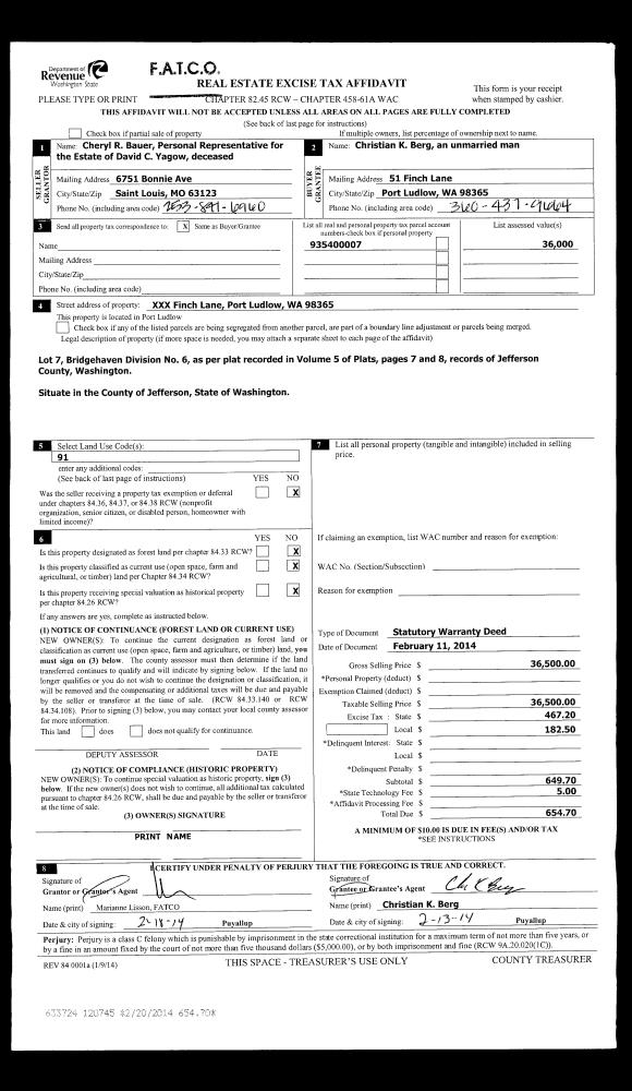 | Mailing Address: | 891 W EGG & I RD CHIMACUM, WA 98325-9742 | % Ownership: | 100.0000000000% |