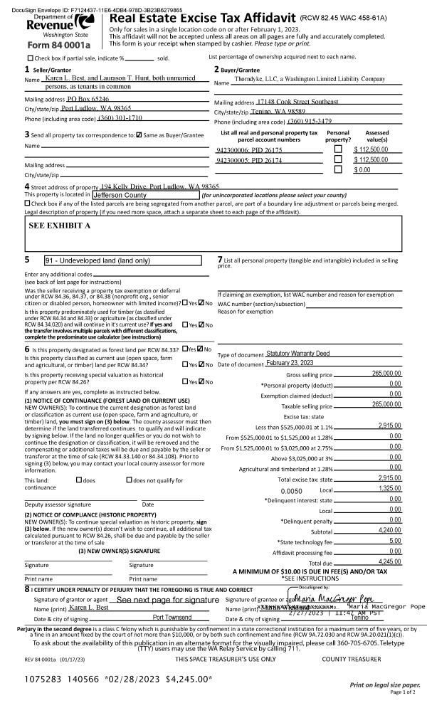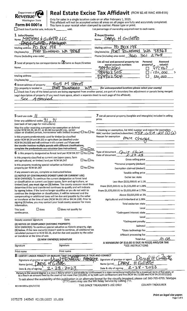 | Mailing Address: | 1191 EGG AND I RD CHIMACUM, WA 98325-9722 | % Ownership: | 100.0000000000% |