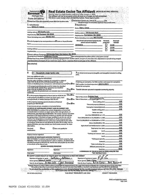 | 4 | 04/28/1998 | SWD | Statutory Warranty Deed | JEVNE, RICHARD L/FLORENCE | MATHEWS, BUD/MARIANNE/JOHN | 0 | 0 | $42,000.00 | 84399 | 0 |