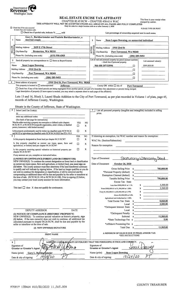 | Mailing Address: | VALERIE A GOULARTE 5795 BEAVER VALLEY RD CHIMACUM, WA 98325-8705 | % Ownership: | 100.0000000000% |