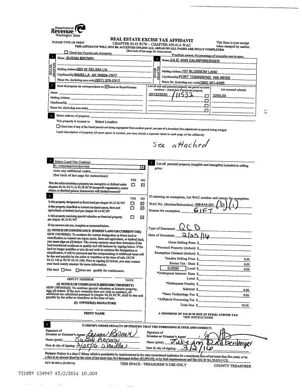 | Mailing Address: | 2730 EGG AND I RD CHIMACUM, WA 98325-7716 | % Ownership: | 100.0000000000% |