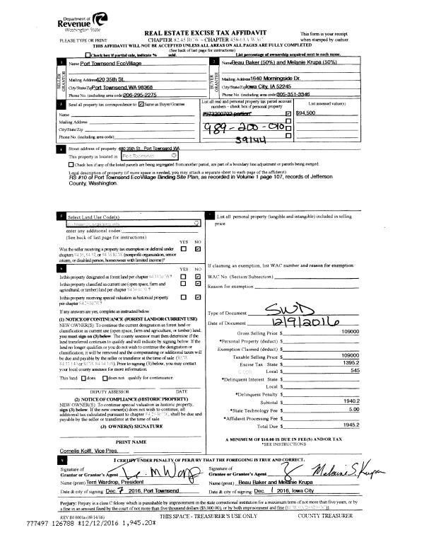 | Mailing Address: | THE KRA GROUP LLC UNDIV INT EACH PO BOX 4118 SEQUIM, WA 98382-4354 | % Ownership: | 100.0000000000% |