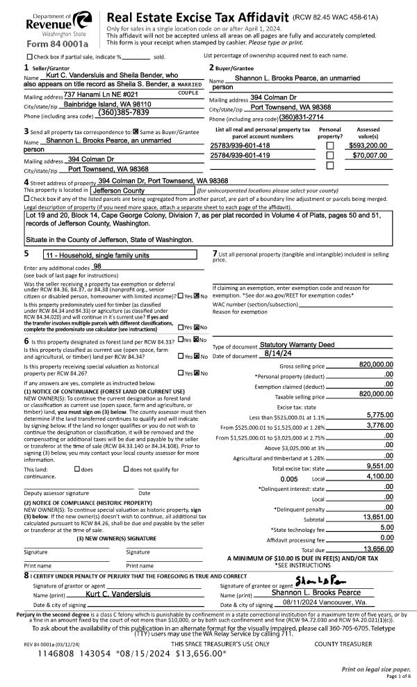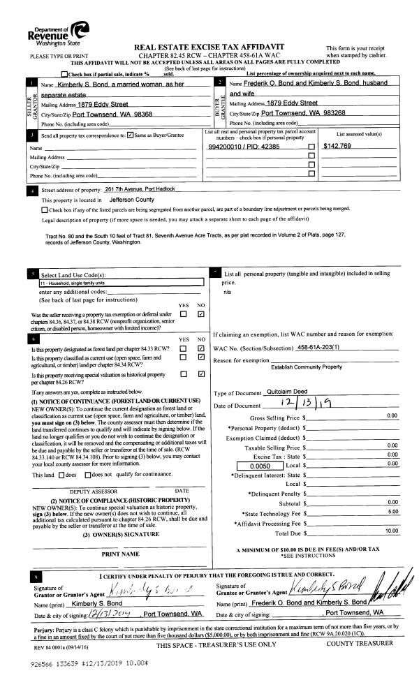 | 2 | 09/04/2020 | SWD | Statutory Warranty Deed | TIMOTHY K GUTHRIE | DORIS M SHARP & JERI M MCCANN | | | $114,000.00 | 135056 | |