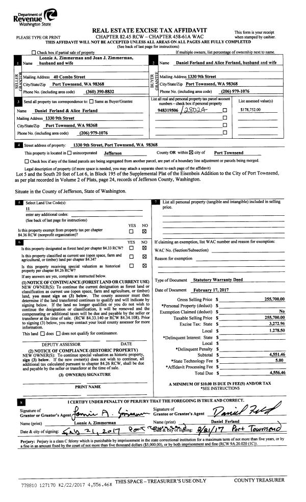 | Mailing Address: | MAX FLUITT TRUSTEE SARA FLUITT TRUSTEE 142 CRAIG HEIGHTS LN SEQUIM, WA 98382-6708 | % Ownership: | 100.0000000000% |