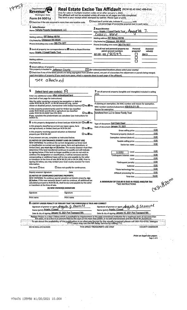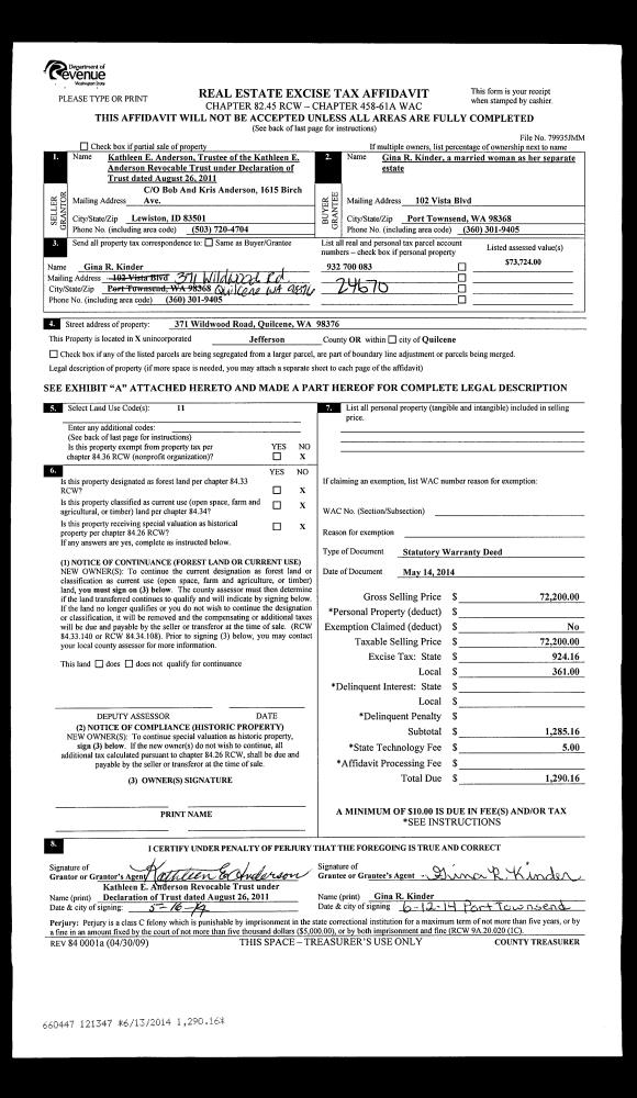 | Mailing Address: | MAX FLUITT TRUSTEE SARA FLUITT TRUSTEE 142 CRAIG HEIGHTS LN SEQUIM, WA 98382-6708 | % Ownership: | 100.0000000000% |