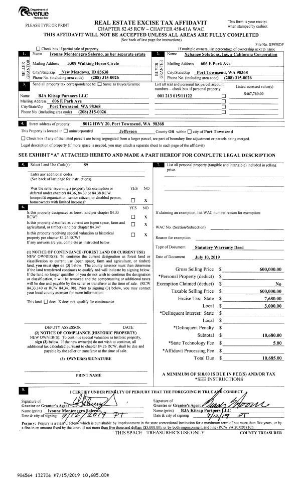 | 3 | 05/29/2020 | SWD | Statutory Warranty Deed | DAVID LU | OLE AXVIG | | | $845,000.00 | 134468 | |