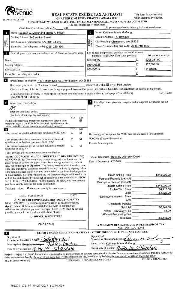 | Mailing Address: | 5981 OLD GARDINER RD PORT TOWNSEND, WA 98368-9779 | % Ownership: | 100.0000000000% |