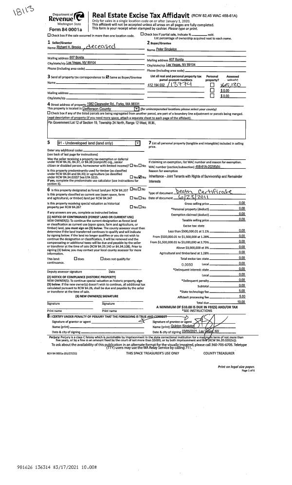 | 1 | 05/19/2021 | SWD | Statutory Warranty Deed | | | | | | 136983 | |