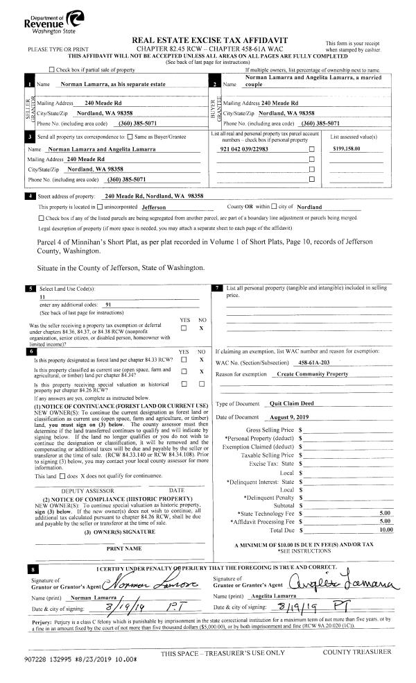 | 9 | 08/04/1986 | SWD | Statutory Warranty Deed | REID, HOWARD C & EMMA | JOHNSON, MAGGIE & CARL | 0 | 0 | $0.00 | 95910 | 0 |