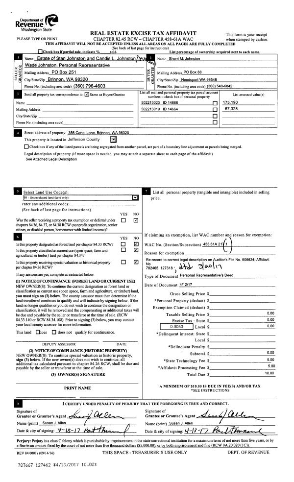| 1 | 12/26/2017 | SWD | Statutory Warranty Deed | RONALD R RIGGLE | DICK & SANDRA REASON | | | $600,000.00 | 129305 | |