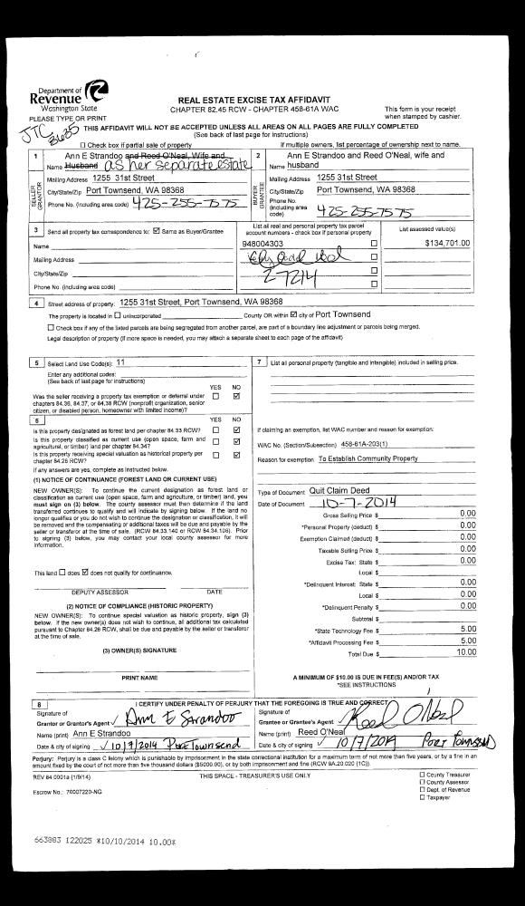 | 3 | 08/31/2015 | QCD | Quit Claim Deed | | | | | | 123889 | |