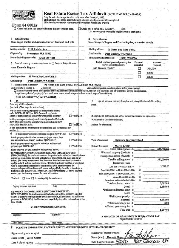 | 3 | 09/09/2021 | SWD | Statutory Warranty Deed | BENJAMIN W JENNETT | SHAWN & JOANNE HAYS | | | $525,000.00 | 137849 | |