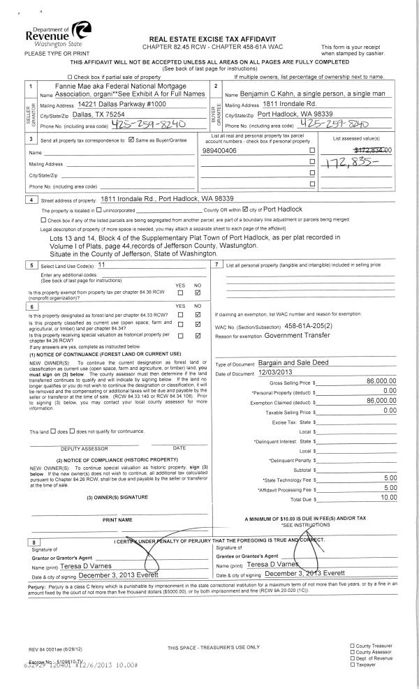 | Mailing Address: | ROBERT V FITZGERALD 1463 W UNCAS RD PORT TOWNSEND, WA 98368-8709 | % Ownership: | 100.0000000000% |
