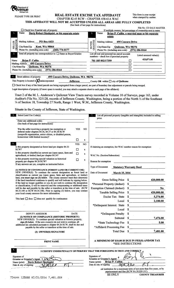 | Mailing Address: | 1615 E MARROWSTONE RD NORDLAND, WA 98358-9681 | % Ownership: | 100.0000000000% |