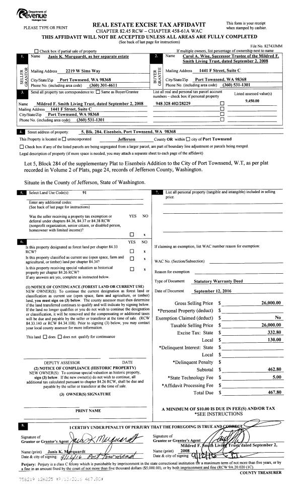 | Mailing Address: | PAULA LALISH TRUSTEE G & P LALISH REV TRUST 1101 E MARROWSTONE RD NORDLAND, WA 98358-9677 | % Ownership: | 100.0000000000% |