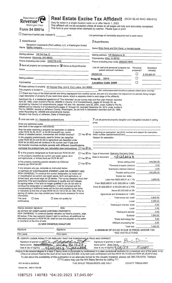 | 7 | 06/18/1991 | SWD | Statutory Warranty Deed | GROVES, DONALD E & PATRIC | HERSLOFF REVOCABLE TRUST | 0 | 0 | $0.00 | 83831 | 0 |