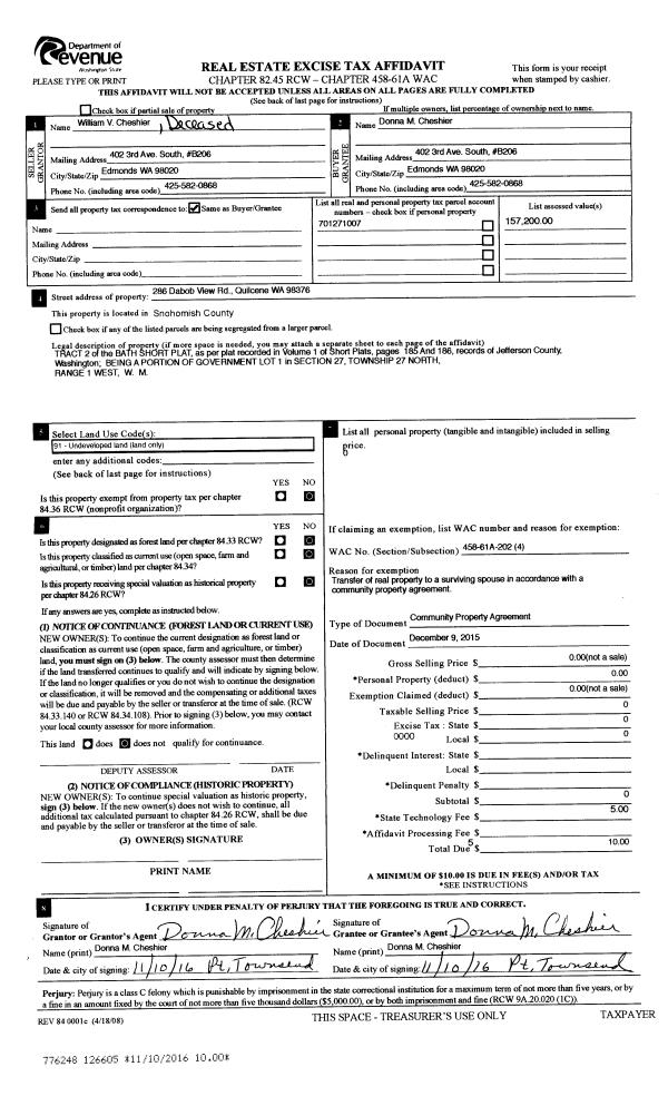 | 1 | 4630-1555A | Marrowstone Is Avg Wtr View <6 Acres | 1.3600 | 59241.60 | 0.00 | 0.00 | 0.00 | $45,696 | $0 |