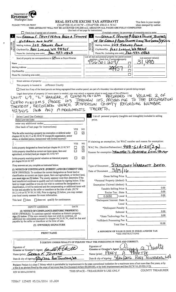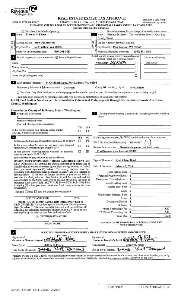 | 4 | 09/03/2015 | QCD | Quit Claim Deed | GILBERT H FULKERSON | GILBERT H FULKERSON JR LIVING TRUST | | | | 123939 | |