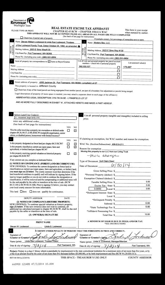 | Mailing Address: | 53 ROBBINS RD NORDLAND, WA 98358-9607 | % Ownership: | 100.0000000000% |