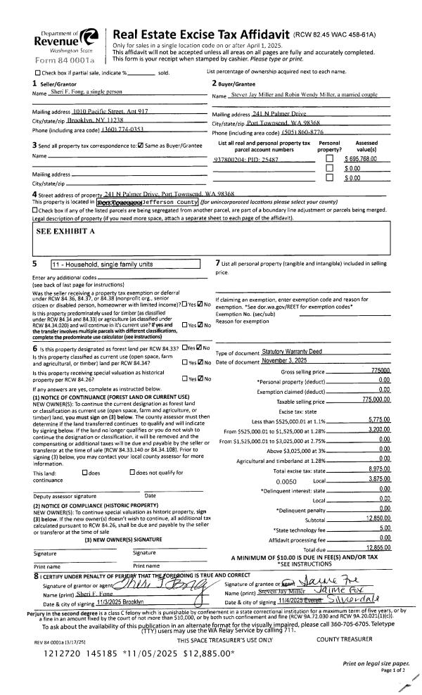 | Mailing Address: | %GERALD DACKIN 184 GARDEN CLUB RD NORDLAND, WA 98358-9684 | % Ownership: | 100.0000000000% |
