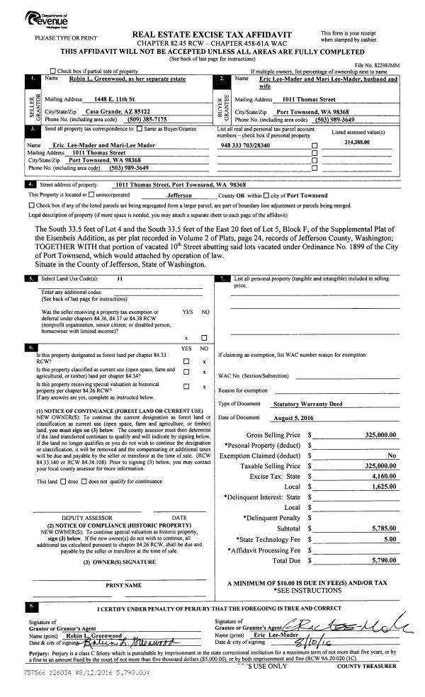 | Mailing Address: | PO BOX 209 PORT HADLOCK, WA 98339 | % Ownership: | 100.0000000000% |