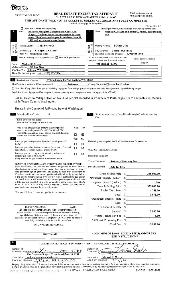 | Mailing Address: | GARRON J PETRICK JR PO BOX 900 PORT HADLOCK, WA 98339-0900 | % Ownership: | 100.0000000000% |