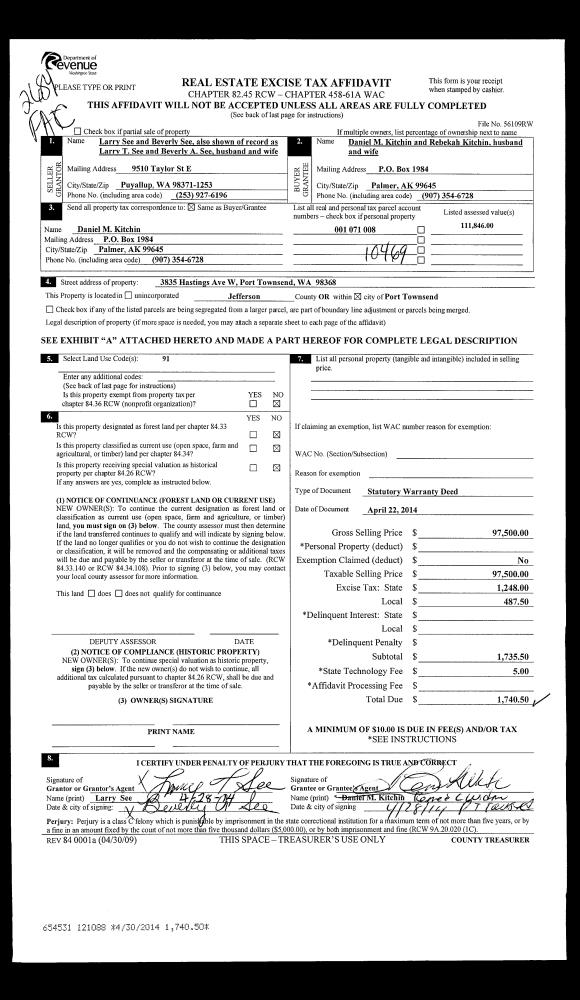 | 1 | 03/21/2015 | SWD | Statutory Warranty Deed | ALAN E ROSS | ALAN & TERRI ROSS 2012 TRUST | | | | 122964 | |