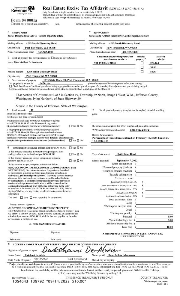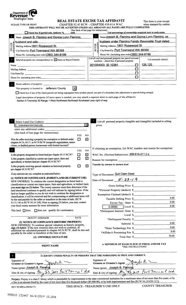 | Mailing Address: | 2971 OAK BAY RD PORT HADLOCK, WA 98339-9728 | % Ownership: | 100.0000000000% |
