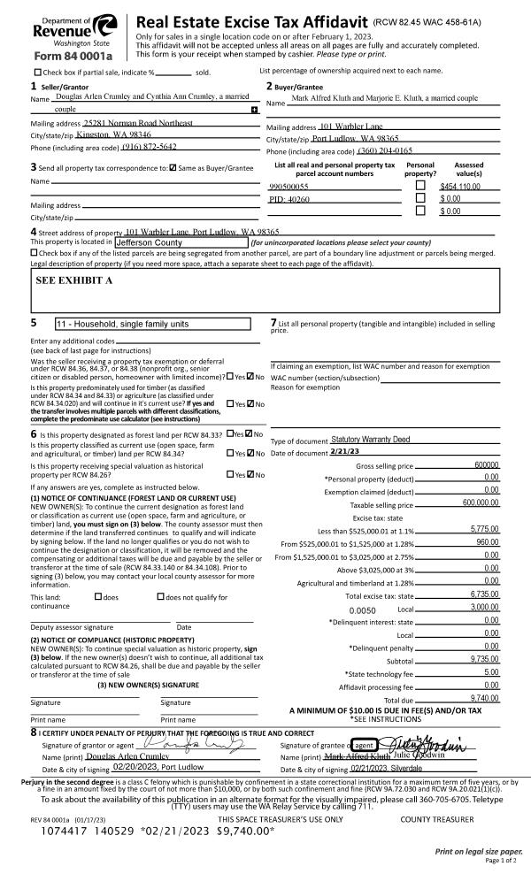 | 4 | 06/05/2000 | SWD | Statutory Warranty Deed | STEVENS, NANCY HUBBARD | CORTRIGHT, WILLIAM M/LINDA L | 0 | 0 | $120,000.00 | 89811 | 0 |