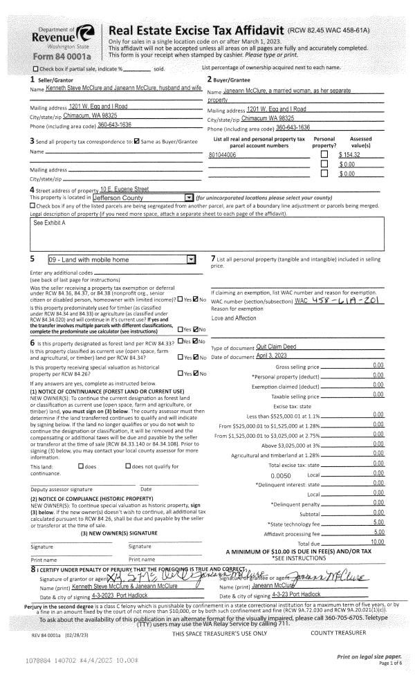 | 3 | 04/11/1994 | SWD | Statutory Warranty Deed | BARNHOUSE, HOWARD T/FLORA | BREITWEG, ALAN E | 0 | 0 | $6,500.00 | 73812 | 0 |