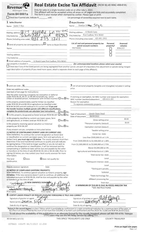 | Mailing Address: | PO BOX 1092 PORT HADLOCK, WA 98339-1092 | % Ownership: | 100.0000000000% |