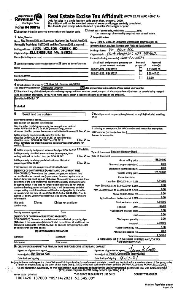 | Mailing Address: | 3640 OAK BAY RD PORT HADLOCK, WA 98339-9730 | % Ownership: | 100.0000000000% |