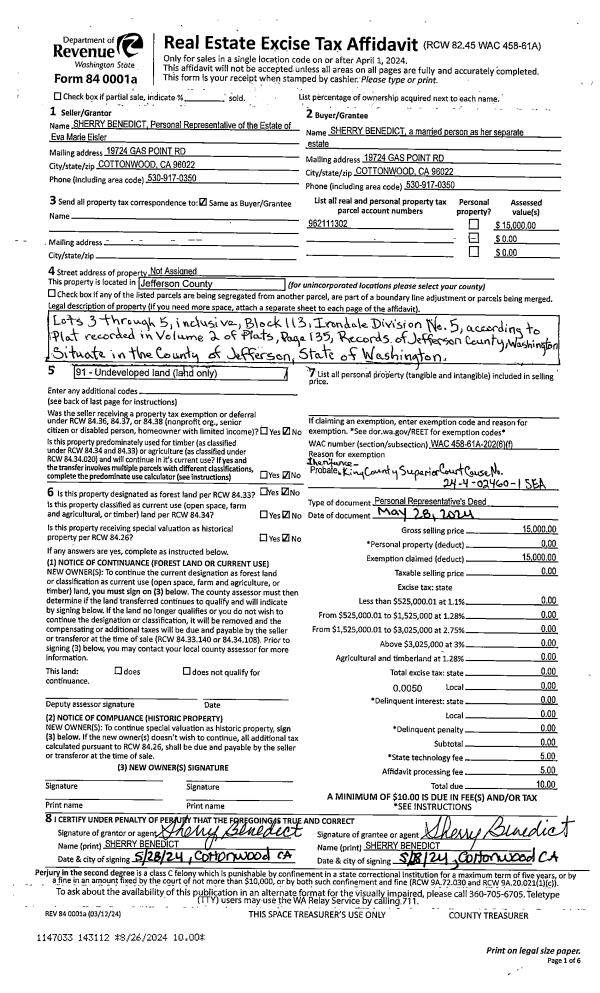| 3 | 10/14/2019 | SWD | Statutory Warranty Deed | FREDERICK DEADRICK & VANESSA DANGERFIELD | | | | | 133469 | |